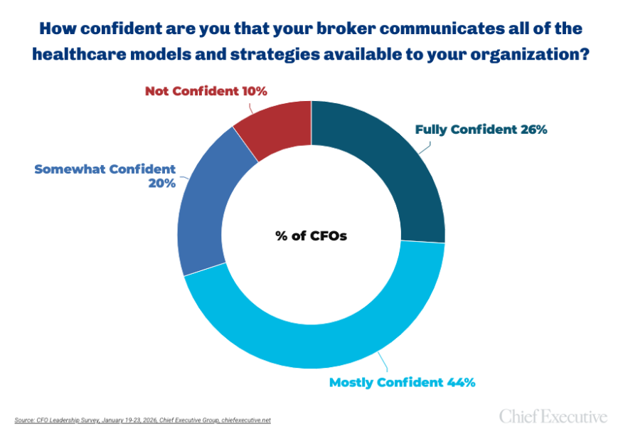 Only 14 percent of CFOs consider themselves “very informed” about alternatives to the traditional healthcare model. At the same time, 95 percent say they trust their broker or advisor to provide complete and unbiased information—over any other source—and 70 percent say they are confident their broker communicates all of the healthcare models and strategies available to their organization.