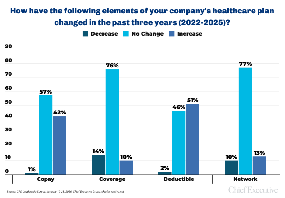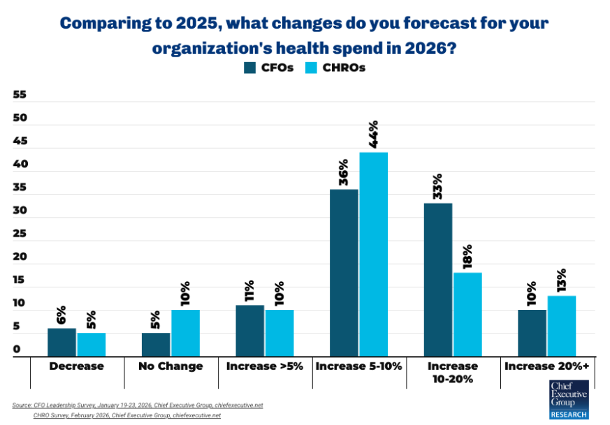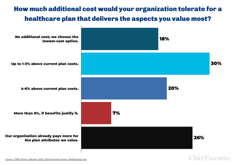 CHROs report similar pressures: 85 percent say healthcare costs per employee are up in 2026, and roughly one-third cite increases exceeding 10 percent.